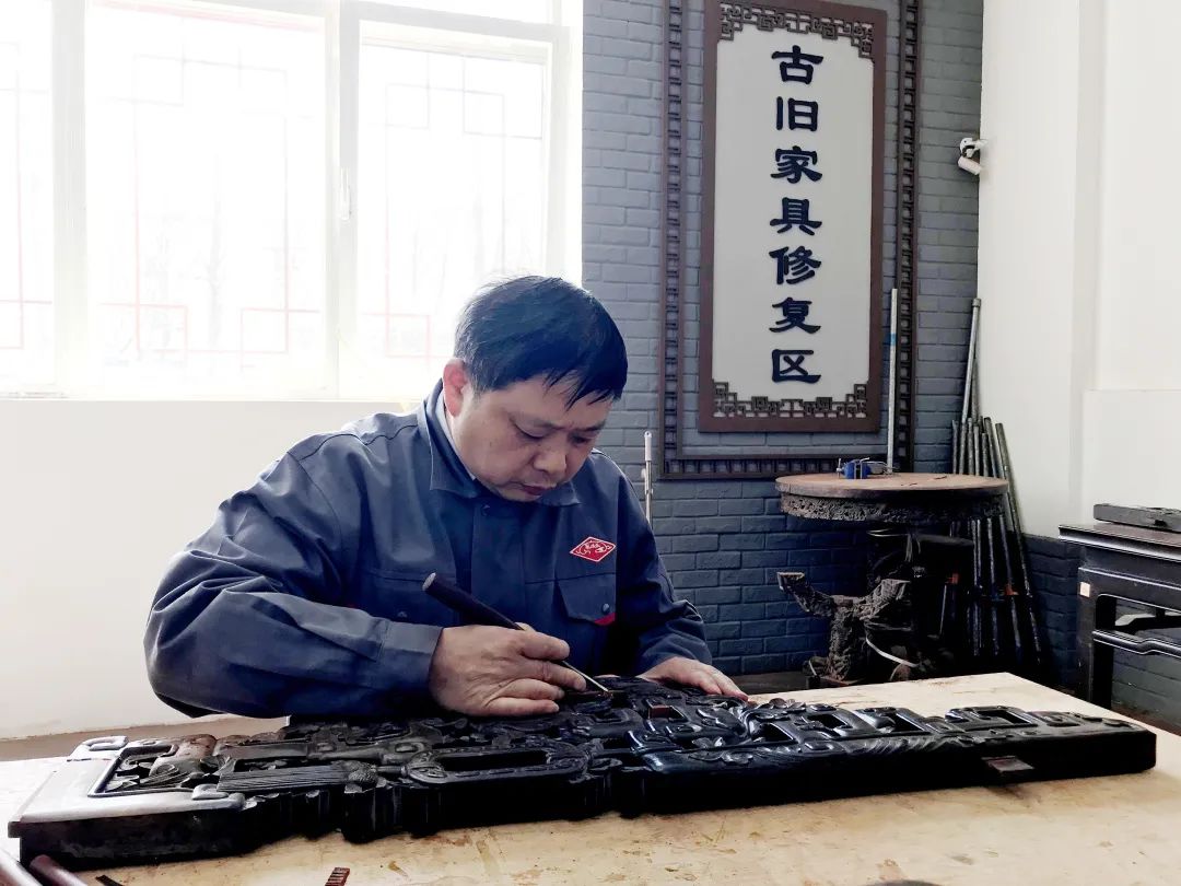 刘更生在修复古旧家具