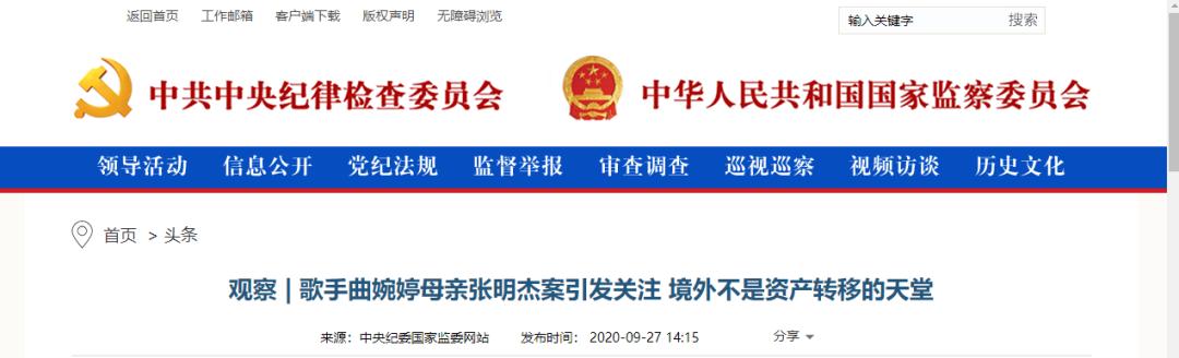曲婉婷长期居住于海外,2020年9月她曾在微博发文谈及张明杰的案件,引起网友关注。当时,中纪委网站刊文表示:舆论关注此事,正是因为人们痛恨腐败分子损害国家和人民的利益,攫取大量不义之财,满足亲属子女奢靡生活。现实中一些案例也正是如此,有的甚至是配偶子女移居海外,财产转移到境外,随时准备“跳船”……