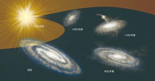 ↑银河早期集成和演化图像示意图