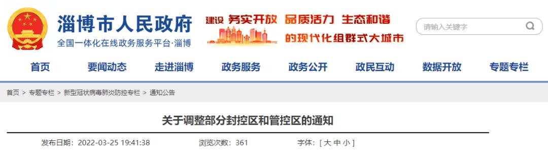 根据国家和省新冠肺炎疫情防控工作有关要求,结合当前淄博市疫情防控形势,周村区大街街道顺园街9号等19个封控区、淄川区双杨镇赵瓦村等22个管控区已达到解除标准,现将调整后的封控区和管控区名单予以公布。