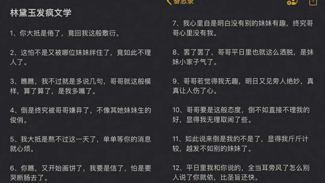 “横竖就拿那么一点工资,还要24小时使唤人了”“你瞧,又开始画饼了,我要是信了,怕是要哭断肠去了”……“林黛玉发疯文学”近来走红。在微博,拥有1.3亿阅读量和5.3万讨论者;在视频平台,“男版林黛玉发疯文学文案”“林黛玉发疯语录”等话题,更是激发了网友们的创作与模仿欲望。