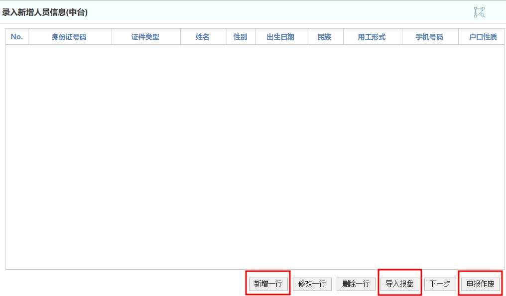 (1)逐个参保职工增员时,点击“新增一行”,项目框按参保人员实际情况填写。