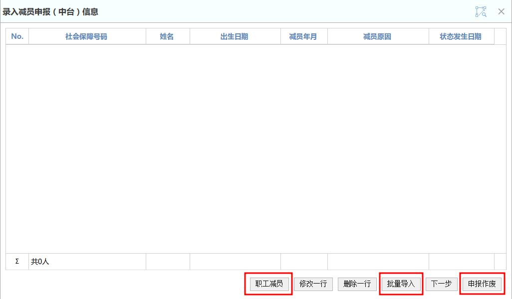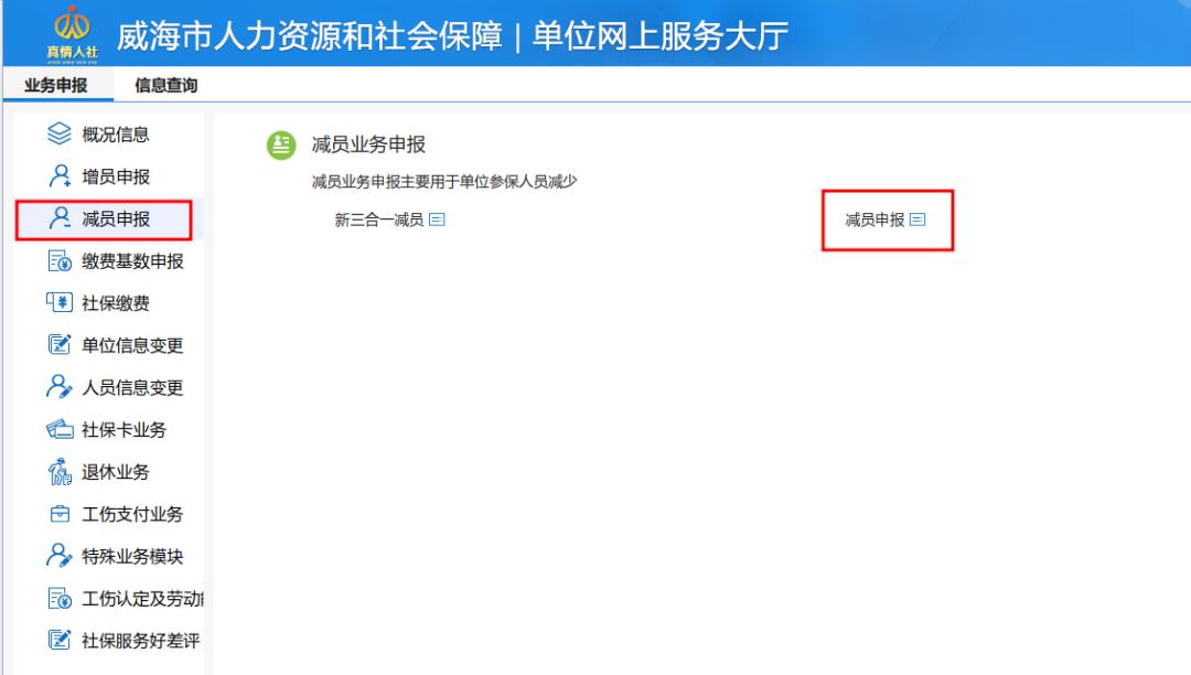 1.操作流程:“业务申报”-“减员申报”-“减员申报”