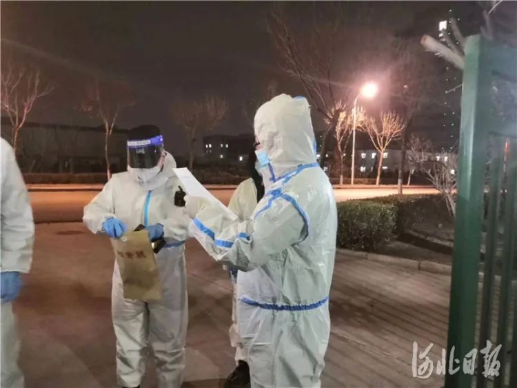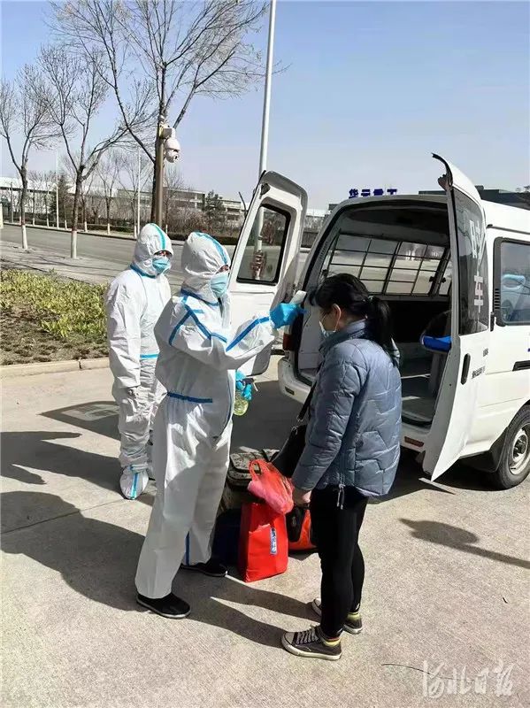 图为廊坊市救助管理站对新入站的外省滞留人员进行体温测量,查验核酸检测结果,并在站外进行人员交接。