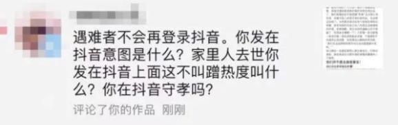 另一位乘客家属表示,得知航班出事后,家人在抖音发了一个怀念亲人的视频,视频中的社交平台头像、名字等均被隐去,但自3月23日晚开始,遭受了个别网友的“猛烈攻击”,相关截图显示,多个账号的评论留言不堪入目。