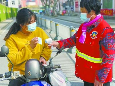昨天,燕子矶街道吉祥庵社区老大妈们自发组成“老大娘守护岗”,守护小区的第一道关口。通讯员 胡吉 南京日报/紫金山新闻记者 徐琦 摄