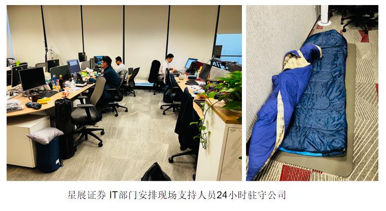 除了与开市交易相关的IT部门日夜驻守以外,券商资管、投行、自营、固收、金融衍生品等部门也精细分工,安排核心人员现场办公,配合远程同事进行高效管理。