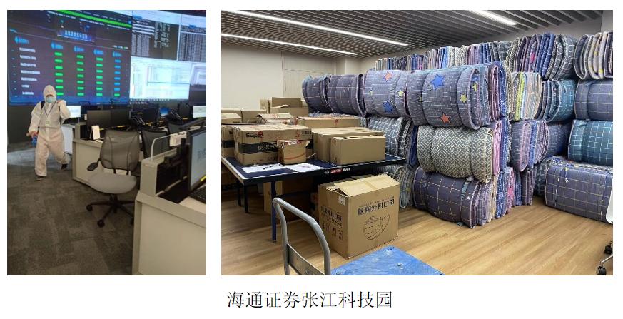 据海通证券介绍,张江科技园聘请专业消杀公司对园区进行预防性消杀,日常由保洁人员增加清洁消毒频次,为员工全力打造安全的工作环境。27日晚,园区紧急采购生活物资及医疗药品,为确保运营正常的最小化驻场人员提供睡袋、床垫。上下班人员不坐公共交通,组织统一接送,尽量避免人员交叉。车辆、物品进出喷洒消毒液,人员进出不仅测体温、看双码、查核酸报告,还增加扫描场所码,以此定点监控人员流动状况。