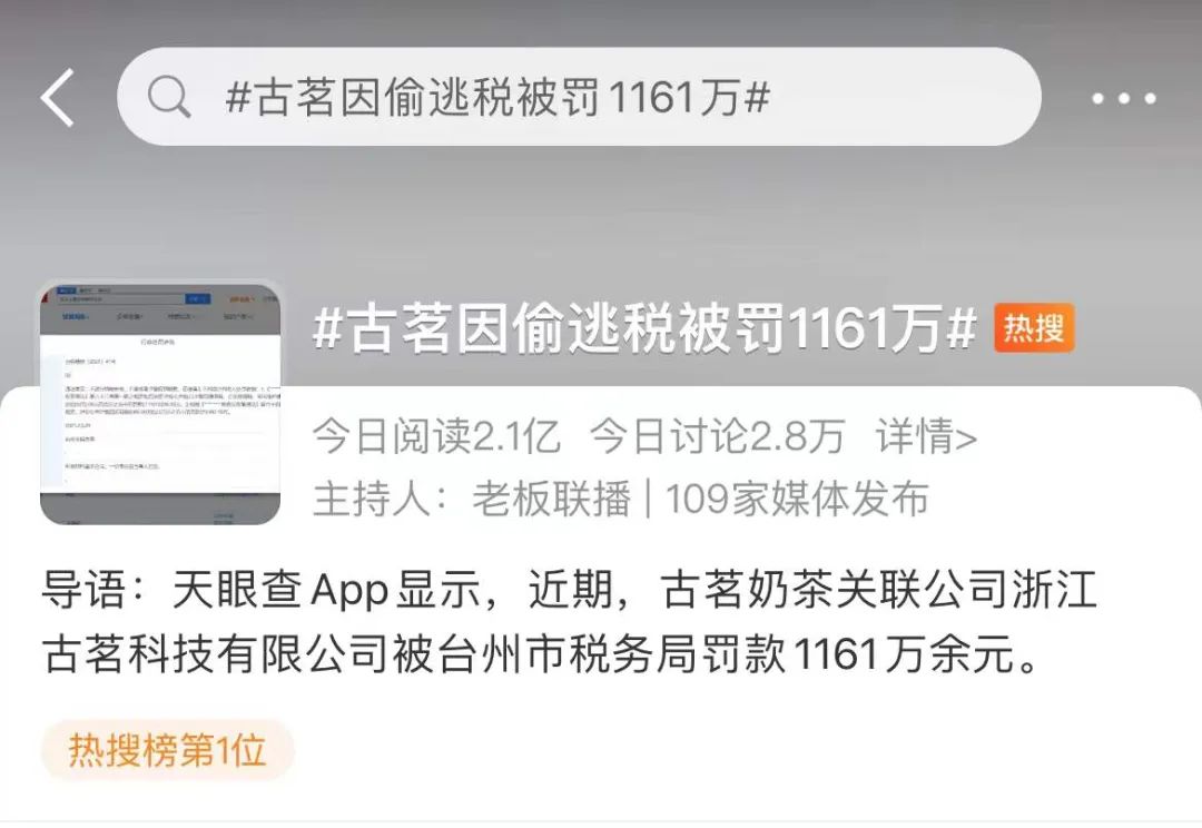 原标题:《奶茶也塌房?热搜第一!古茗偷逃税被罚1161万》