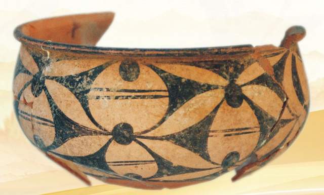 ▲ 仰韶文化彩陶盆(河南三门峡庙底沟遗址出土)