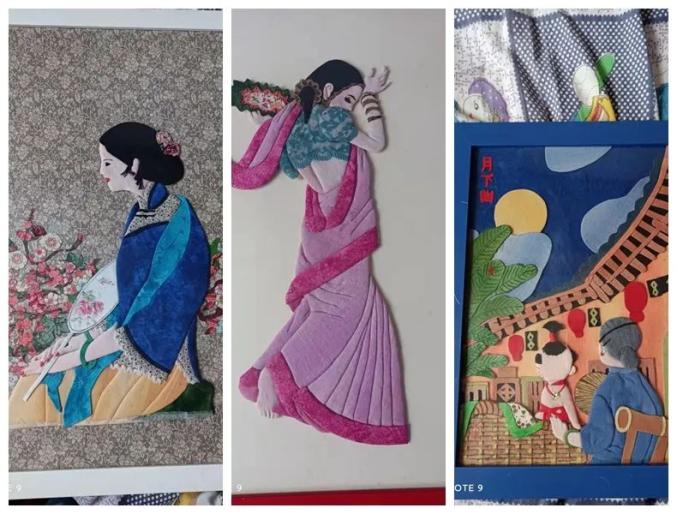 ▲朱年老师准备的布艺拼贴画