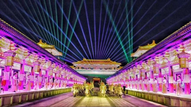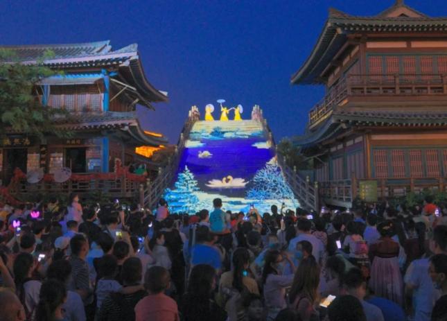 夜幕降临,人流如织,盛唐建筑,闪耀繁华。盛世唐城以“大唐倚梦”夜游项目为核心,主推将中国传统唐代历史文化与现代高科技完美结合,以“沉浸式”游戏化体验突破传统观赏模式,配合数字化技术,让游客在“沉浸式”游戏体验中多角度全方位地解读唐代历史文化,在欣赏中实现交流互动。