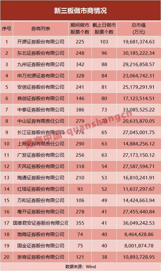 截至2022年3月29日,做市股票个数排名前五的券商依次是开源证券、东北证券、九州证券、申万宏源、安信证券。