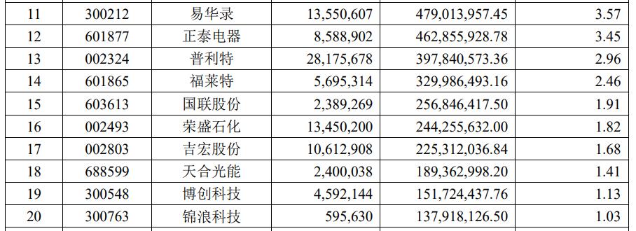 年报中还披露广发中小盘的隐形重仓股,依次为易华录、正泰电器、普利特、福莱特、国联股份、荣盛石化、吉宏股份、天合光能、博创科技、锦浪科技。