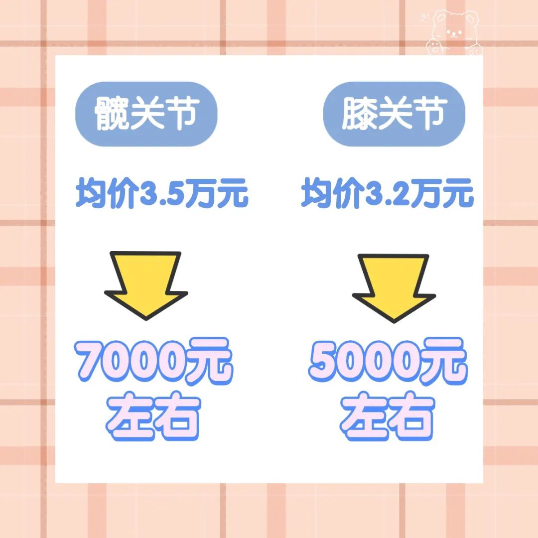本次国家组织人工关节集中带量采购中选髋关节价格从均价3.5万元降至7000元左右,膝关节价格从均价3.2万元降至5000元左右,中选人工关节价格平均降幅达82%。全市共有22家医疗机构参与人工关节集采工作,首年采购总量3336套,采购周期内预计节约采购费用7000万元。