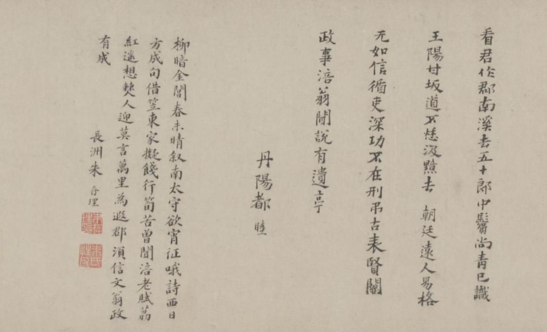 明 沈周《京江送别图》局部,朱存理所题之诗,故宫博物院藏