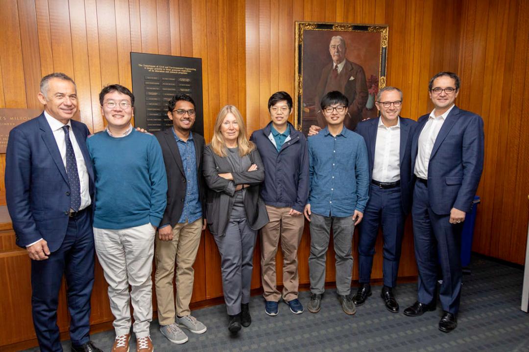 所以兰博基尼找到 MIT( 美国麻省理工学院 ),还有来自北京大学的博士窦锦虎( 左二 ),目前也是北京大学材料科学与工程院的特聘研究员。