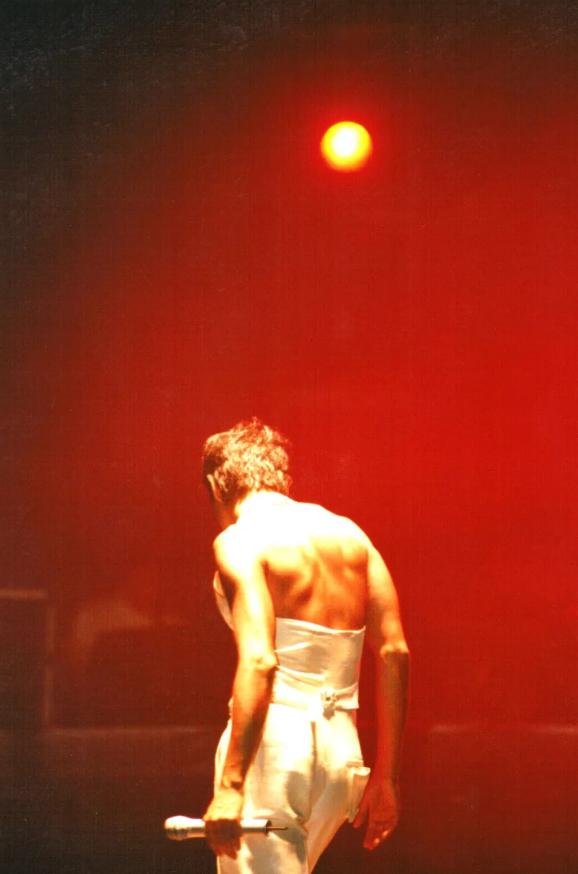 舞台上Leslie就像坠入凡间的天使,模糊了性别与物种,似在突破禁锢,又似孤芳自赏。就如他穿着浴袍赤着脚演唱的那首《我》:我喜欢我/让蔷薇开出一种结果/孤独的沙漠里/一样盛放的赤裸裸