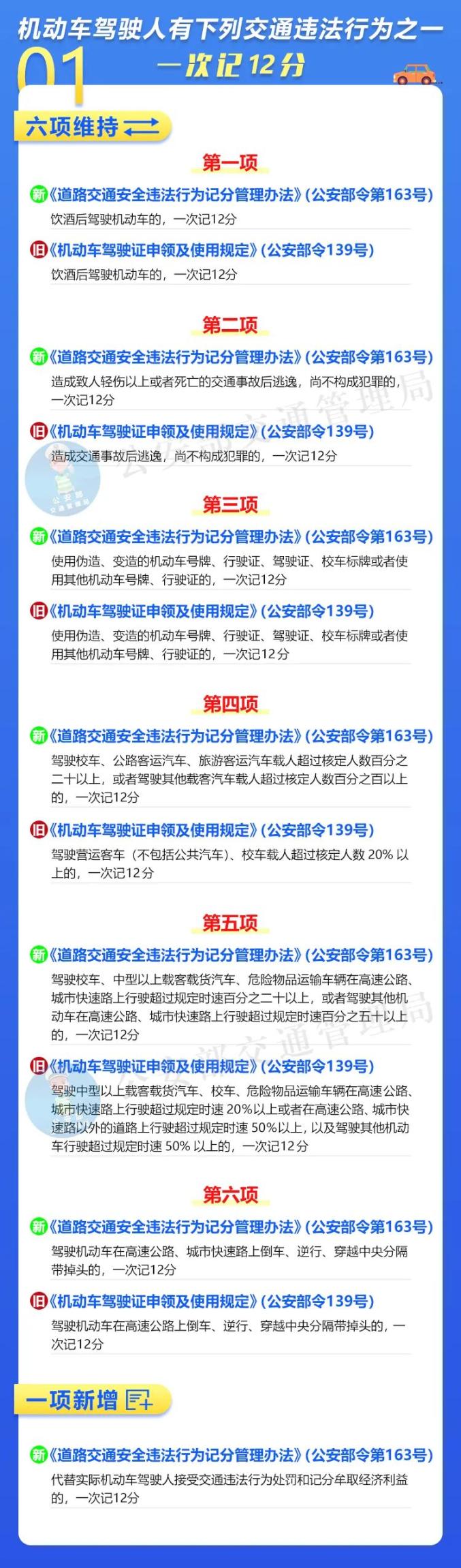 未按规定悬挂号牌从12分调整为3分,比如未按规定使用4颗螺丝固定,避免了分数直接清零的问题出现;