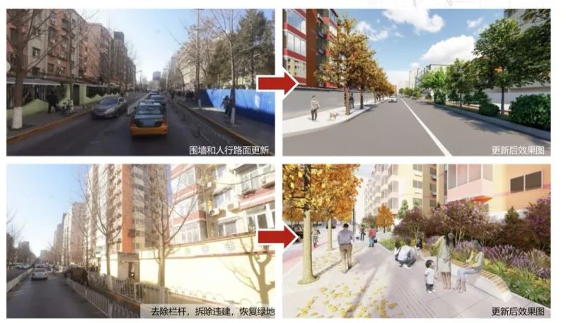 买卖街片区,背街小巷涉及买卖街、煤厂前街、北上村路。重点大街涉及枫林路。平房院落涉及买卖街两侧临街房屋(1-11号、45-58号)。其中重点大街将开展沿街景观绿化及公服设施改造。
