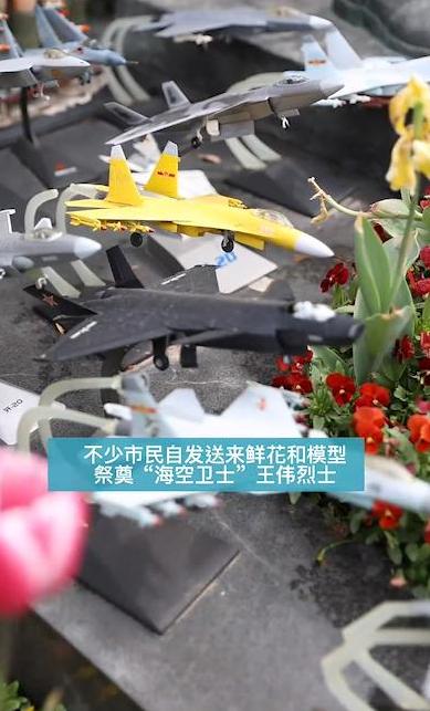 鲜花丛中,最醒目的还有很多战斗机和航母模型。视频截图《环球人物》去年刊发的报道提到,王伟烈士的儿子考上了海军工程大学,成了一名海军军官。王伟烈士遗孀阮国琴说,每年4月1日,当大家呼喊“81192,请你返航”的时候,不仅是呼唤着王伟,也是呼唤着每一位英雄。无论是抗疫中“逆行”的医务工作者,还是抗洪抗震中抢险救灾的官兵,或是深入贫困地区扶贫的干部,20年来,他们虽然和王伟奋战在不同战线上,但都是这个国家的英雄。看到他们,阮国琴就知道,这个国家无数平凡人都有和王伟一样的良知:在重要关头、危急时刻,舍得将自己的生命献给祖国、献给人民。“王伟的牺牲,为祖国的安全和发展做了贡献。为这么好的一个祖国牺牲,是值得的!”
