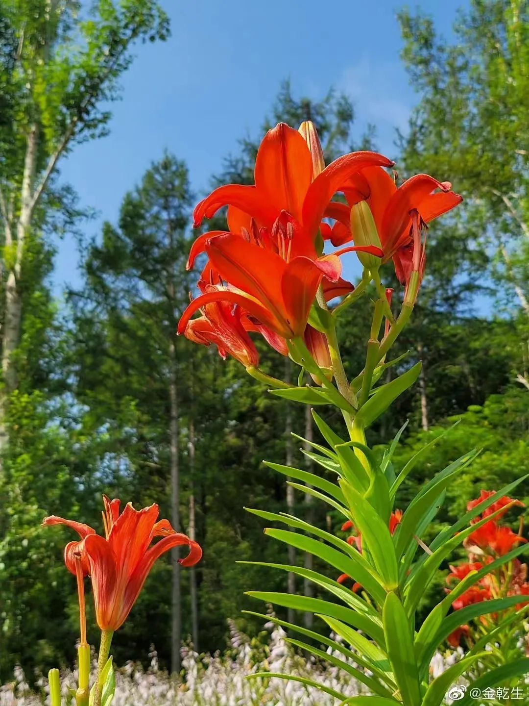 抬头仰望,湛蓝的天空飘着朵朵洁白的云彩,空中偶尔飞过几只小鸟,发出清脆的鸣叫声;