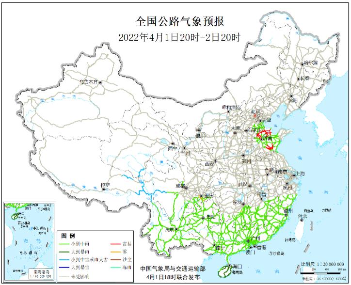 4月1日20时至2日20时,西藏东部、青海南部、川西高原等地部分地区有小到中雪,局地有大雪。云南中部和西部、海南岛等地部分地区有中到大雨,其中,海南岛中东部的部分地区有暴雨。山东北部和中部局地有雷暴。另外,重庆西南部局地有雾。