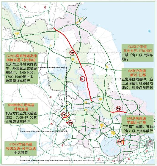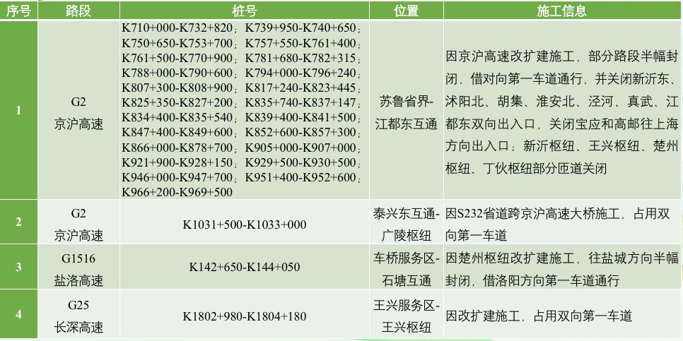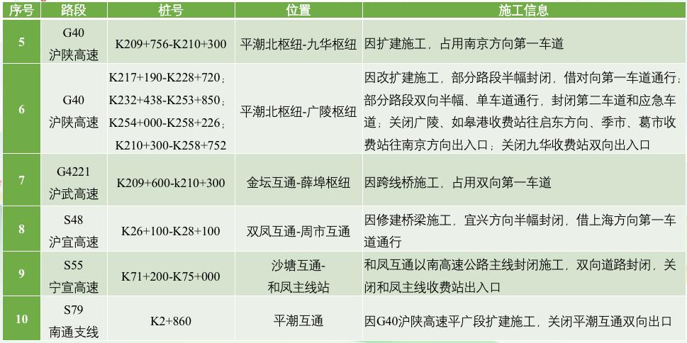 清明期间,省内有G2京沪高速、G40沪陕高速等10处高速公路施工路段、节点,请注意现场交通标志提示!