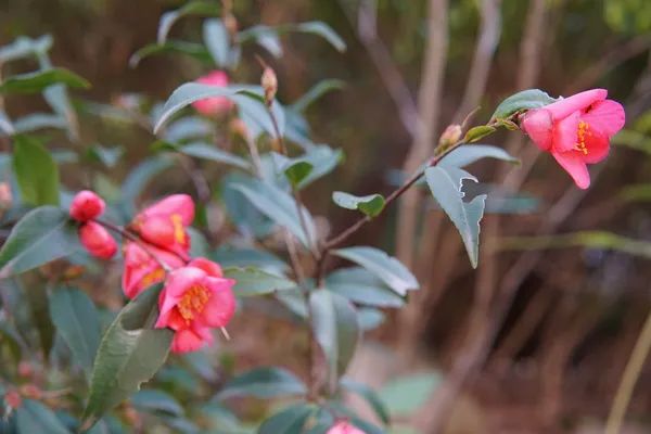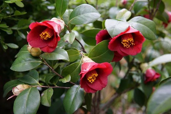 还有几棵茶花,连品种都忘记了,等着吧。为茶花都覆盖了一层酸性植料,一层自制花园堆肥。它们喜欢脚下的土壤疏松,用耙子翻松根系外围的土地,加足氮肥,可以防止茶花常见的花期黄叶。