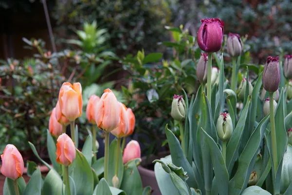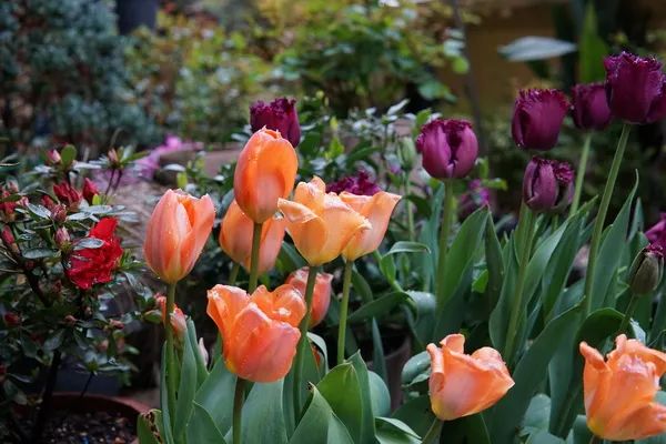 郁金香和欧报春是今年唯一种的两种季节植物。郁金香里,“夜皇后”开得最好。但如果没有白绿色的“绿鹦鹉”和“绿萼”,暖橙色的“橙色皇帝”,灰黑色的“夜皇后”早春在光秃秃的花园也寂寞。