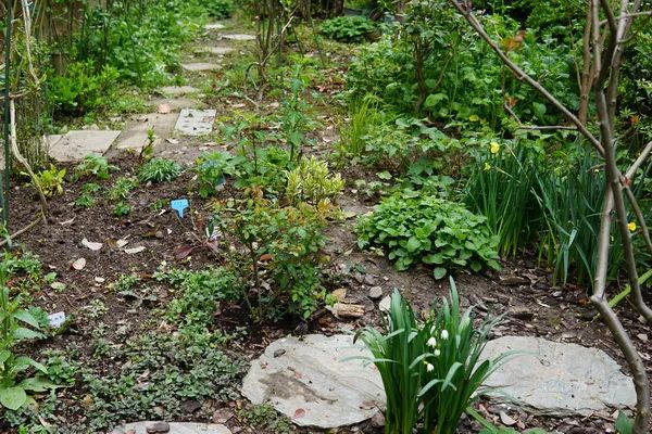 那块地界本来的主宰是一大架金银花。今年下狠心重剪,重新搭了小巧得多的支架。阳光和空气一下子进来了,平整它脚下的干硬土地后,种了很多耐半荫的宿根植物。老鹳草、火尾蓼、宿根风铃草、鳞毛蕨、鼠尾草,还塞下一棵矮生的丁香。浇下定根水以后,就算没有人照顾,这块地也会在夏秋蓬勃生长,等着吧。