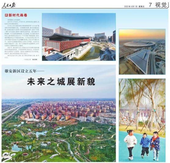 4月1日,《人民日报》视觉版《雄安新区设立五年——未来之城展新貌(新时代画卷)》组图中刊发了中铁十二局集团雄安站宣传报道员任双欢的摄影作品《清晨的京雄城际铁路雄安站》。
