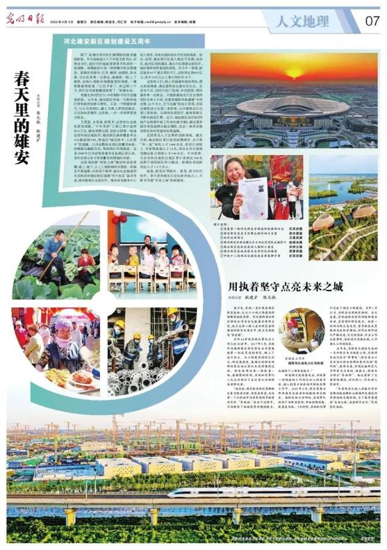 4月3日,《光明日报》刊发《春天里的雄安》一文,中国铁建容东片区安置房项目负责人接受采访并介绍了安置房建设的建筑风格、居住建筑设计标准和公共建筑设计标准,组图中还采用了中铁十二局集团雄安站房及建设者两幅摄影作品。