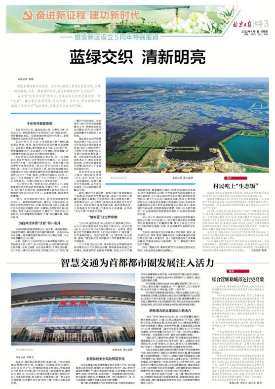 4月2日《环球时报》英文版刊发《Xiong'an takes metropolis shape in 5 years,shows green future》,中铁十二局集团雄安站项目总工程师张昆接受《环球时报》记者的采访,从建设者角度讲述了雄安新区5年来的惊人变化。