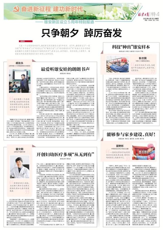 4月1日,中铁建设集团雄安容东D1组团安置房项目建设者夏艳彬建设家乡的故事刊登于北京日报,讲述作为雄安人建设家乡的事迹与感悟。