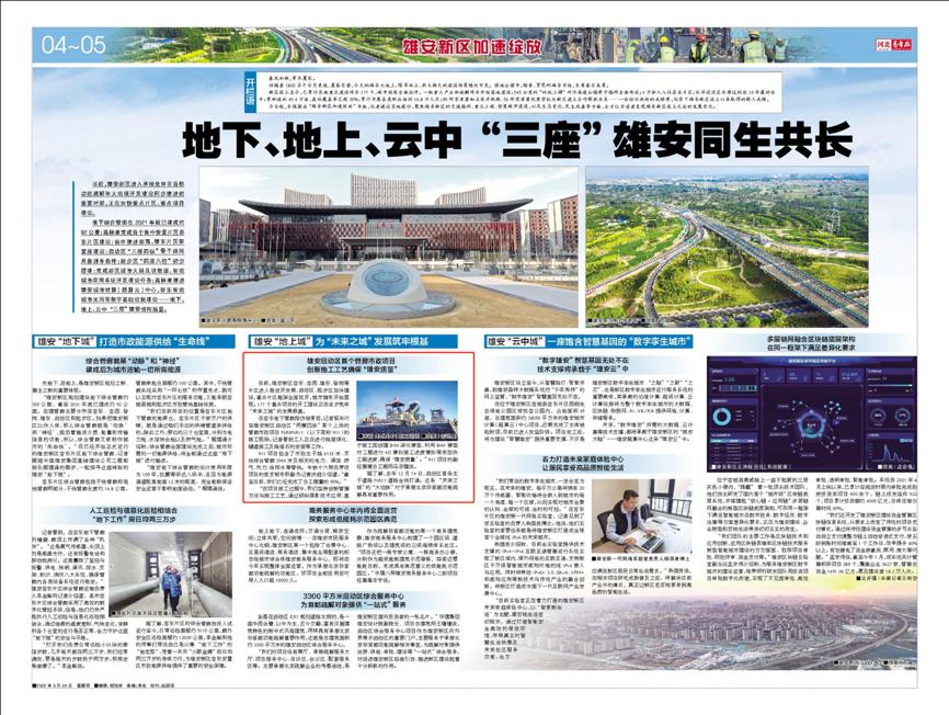 3月31日在《河北青年报》刊登《雄安启动区首个管廊市政项目 创新施工工艺确保“雄安质量”》,中铁十六局集团雄安新区启动区两横四纵NA9NA11项目负责人向记者详细介绍了项目情况及所运用的BIM技术,该项目包含市政主干路、支线综合管廊,是雄安新区启动区第一个正式开工的大型管廊项目。