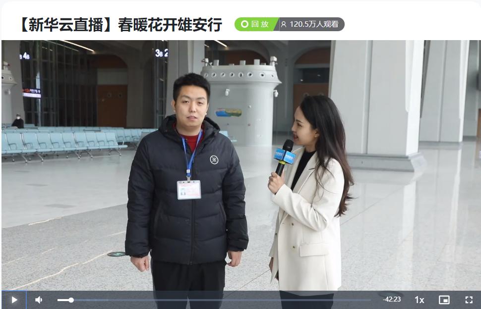 中铁十二局集团雄安站项目总工程师袁晨星出镜接受采访,介绍了建设过程中运用的先进工艺和技术。在40多分钟的节目直播中,达到120.4万人次观看量。