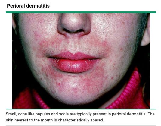 口周皮炎一般聚集在口周、眼周的炎症小丘疹,更红,更凹凸不平。