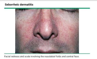 脂溢性皮炎面部受累通常见于鼻唇沟、眉毛、眉间及鼻外侧区。