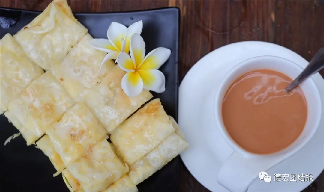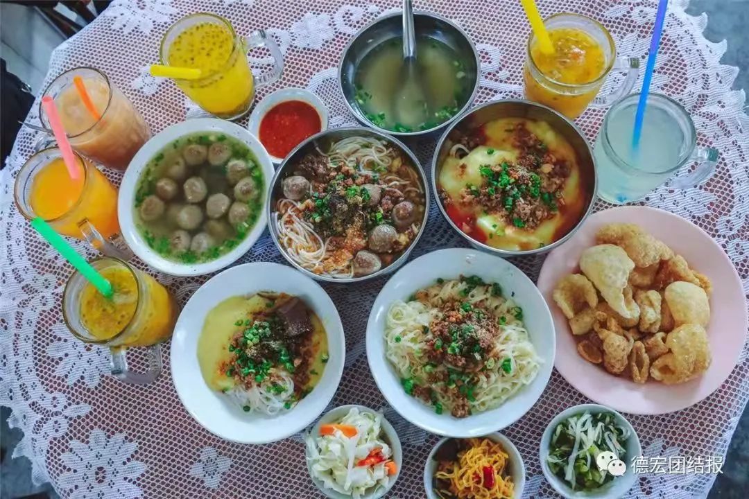 来德宏,美好的一天是从一份早点开始的,满大街的各色小吃,总有一种能勾起你的食欲。最常见的是饵丝、米线,缓缓坐下甩一碗加满“帽子”和各种配菜的饵丝、米线,再配上一杯果汁或奶茶,开启元气满满的一天。不仅如此,卷粉、油条、稀豆粉、油面、甩粑粑……各式早点也是一道清丽的风景线。