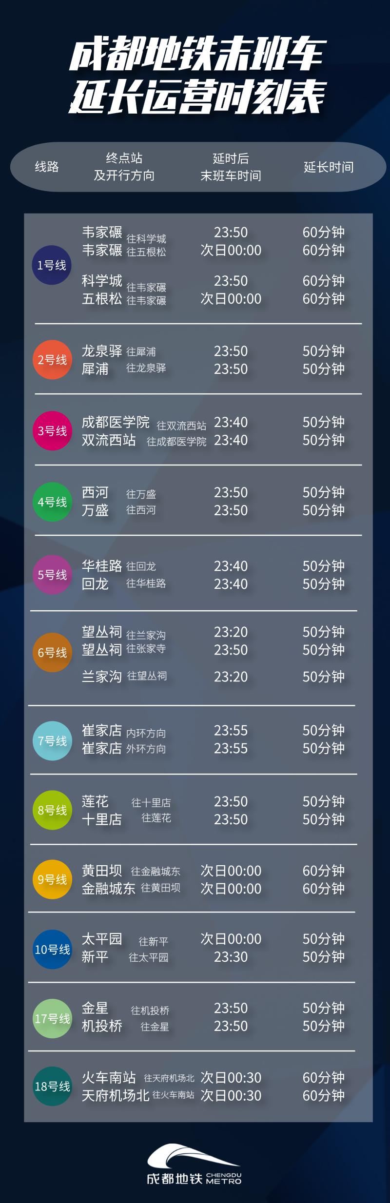 4月2日、4月5日,成都地铁线网延长运营服务时间50-60分钟,热线服务时间也同步延长,全力满足乘客节假日出行需求。