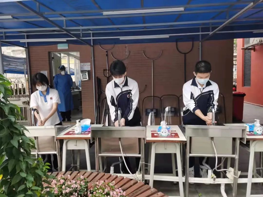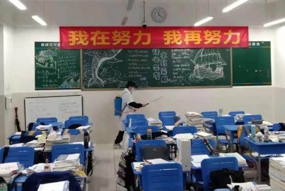 高三返校时,学校就先后多次召开疫情防控工作会议,制定疫情防控工作方案,成立专班,制定日常防控工作制度,此次高一高二返校,我们推出了升级版举措,主要体现为消杀工作总量以及防疫物资储备总量等都要处于高位运行状态。