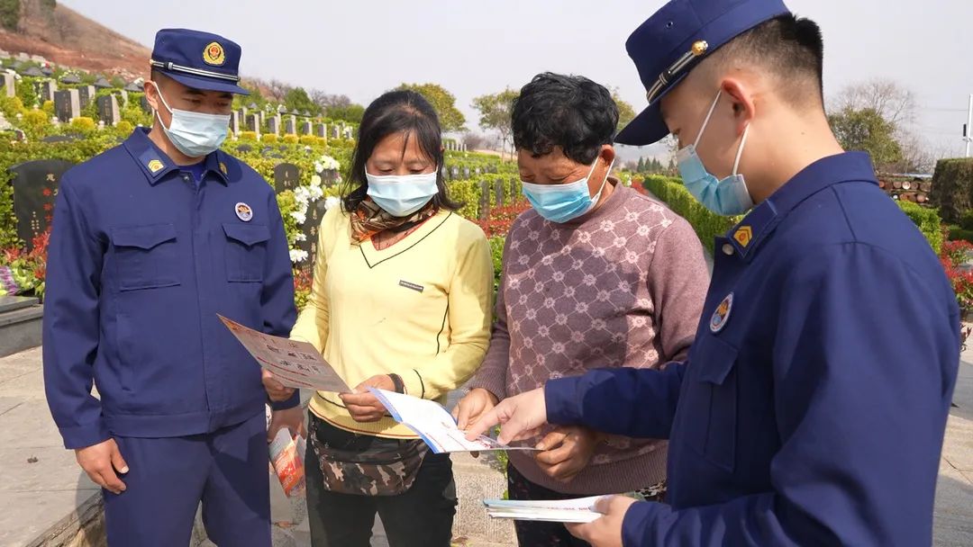“请不要焚烧纸钱,文明祭扫、安全祭扫......”为进一步增强群众消防安全意识,该大队消防监督员向前来祭扫的市民进行消防安全知识宣传,为群众普及防火减灾的常识,同时,通过在墓地内设置提示牌、悬挂条幅、智能循环广播等形式,提醒群众注意防火。