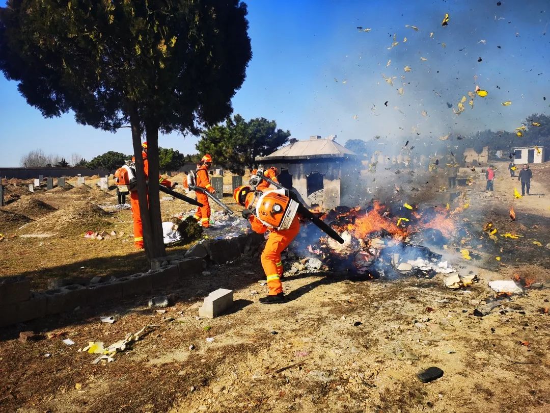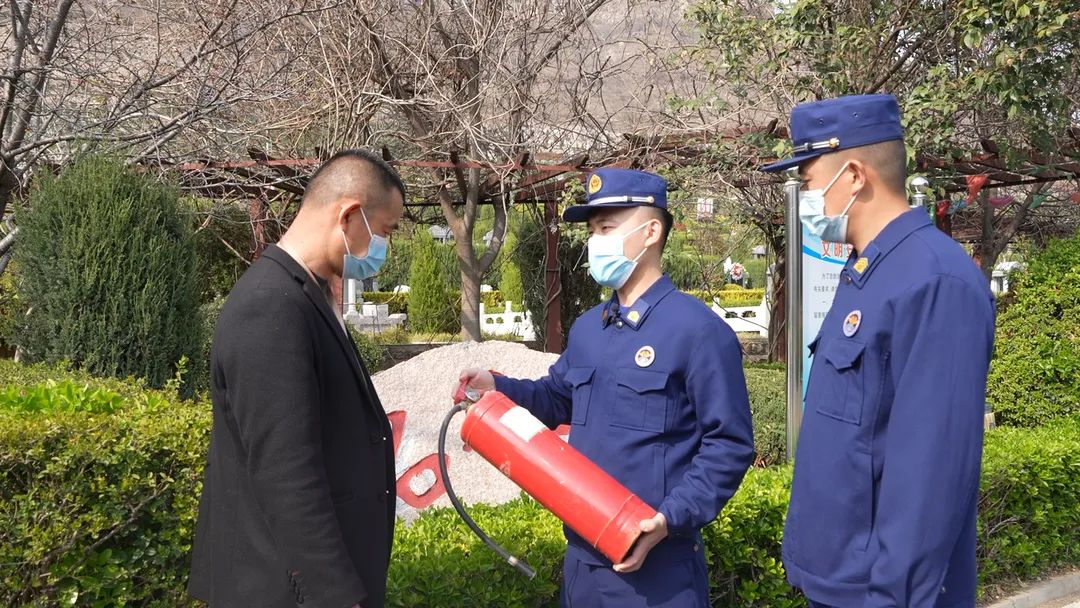“节日期间,我们对公墓陵园等重点场所进行值班备勤,加强防火检查,确保节日期间不发生问题。”