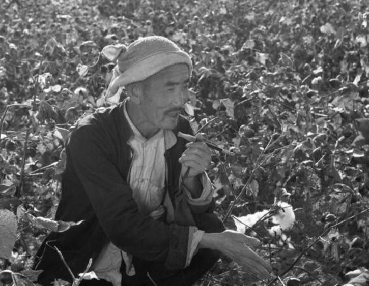 袁隆平身后有个农民装束的人,是 “科学种田” 的代表、来自山西省闻喜县的劳动模范吴吉昌(1910-1992)51,他长期致力于探索棉花丰产规律,为提高棉花产量、解决棉花脱蕾落桃等问题作出了杰出贡献。