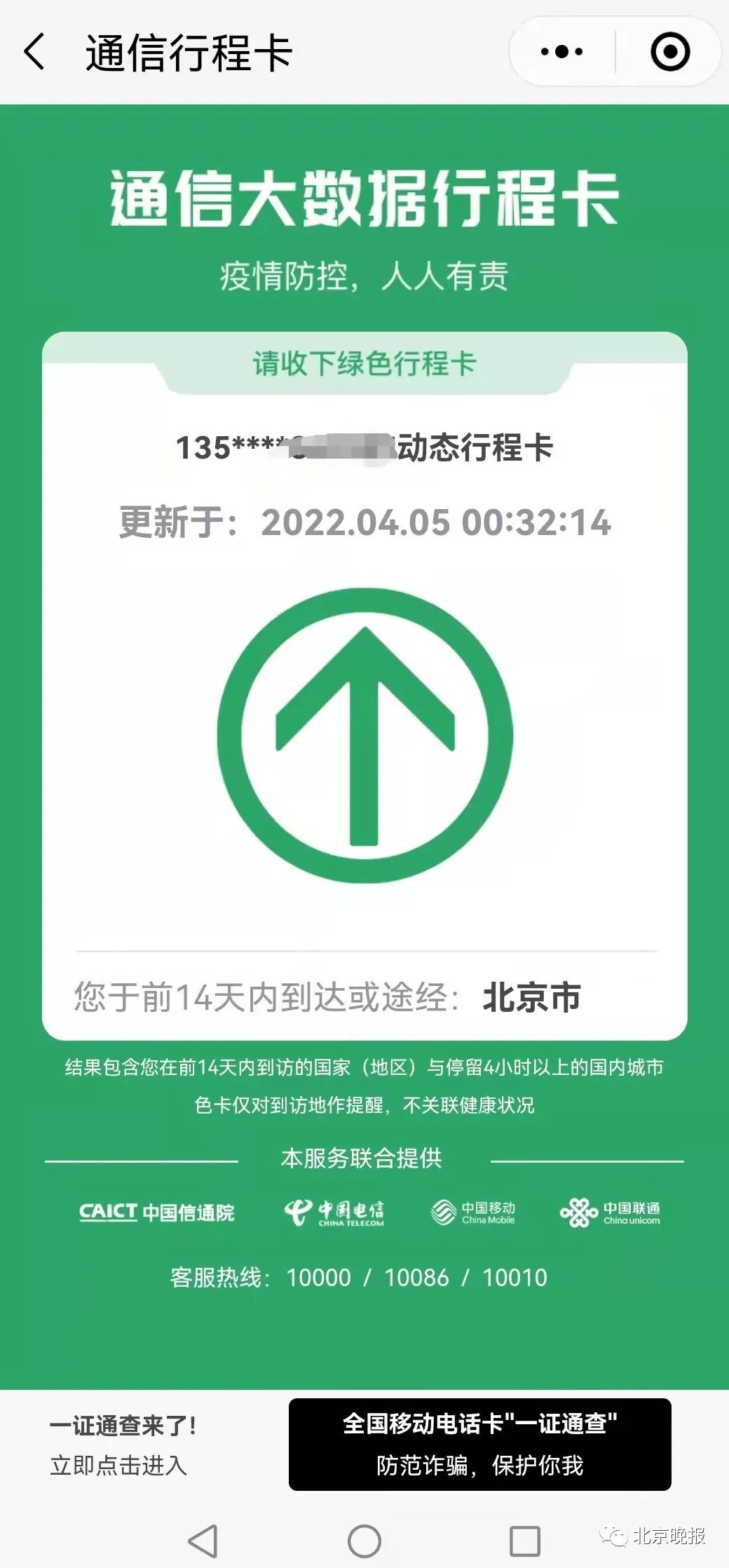 截至目前,北京全市均为低风险地区。通信大数据的行程卡上,北京市后的*(星号)已消失。