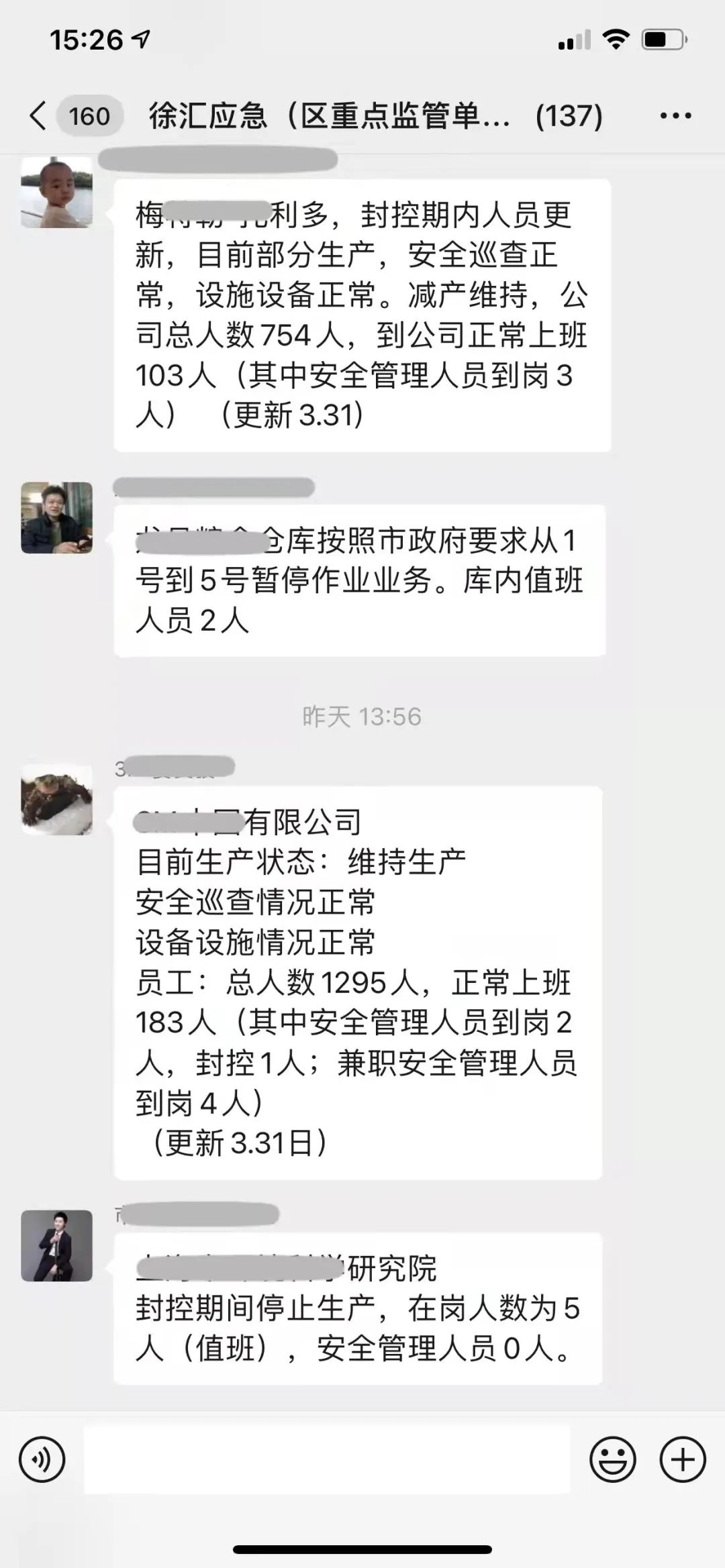 截至4月3日18时,市应急局对上海石化、高桥石化、宝钢股份、宝武特冶等4家市重点检查单位实施调度指导,督促加强38个检维修项目的施工安全,加强98件次因封闭管理超期未检设施设备的维护保养。市区两级部门共检查调度危险化学品企业风险研判和告知承诺情况1533家次,跟踪各类特殊作业984次,对危险化学品企业的重大危险源监测监控情况进行视频抽查95家次,及时处置各类隐患问题25项,指导新增隐患排查用户285家,跟踪新增隐患排查治理信息199条。