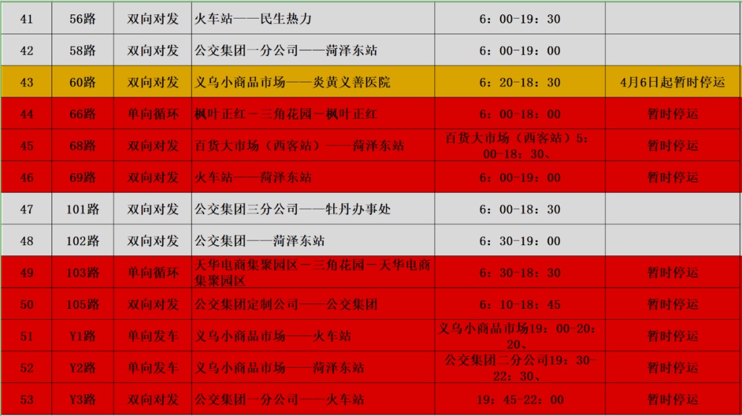 受疫情管控影响,城区公交客流持续下降,根据实际客流情况,自2022年4月6日起,菏泽公交集团对9路、10路、16路、26路、28路、33路、50路、53路、60路,共计9条线路暂时停运,恢复运营时间将另行通知。
