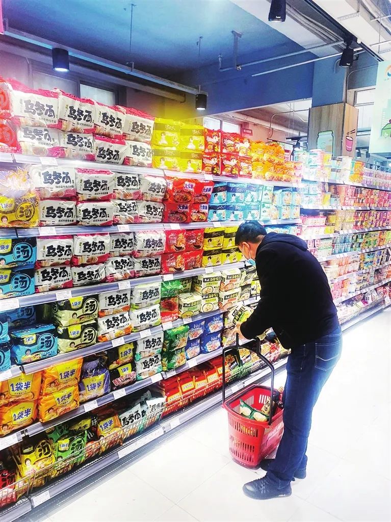 ▲ 胜利街美特好超市,市民选购方便面。