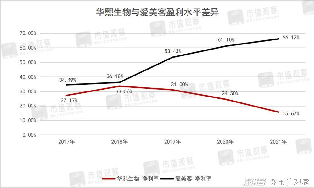 然而,双方在赚钱效应上却出现巨大分野,爱美客在营收不及华熙生物三成的情况下,净利润对后者实现了首次反超。